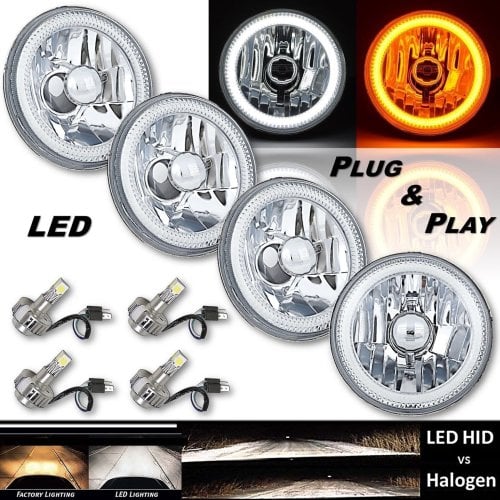 This Is a Set of 4 Crystal Clear Headlights with White Daytime Running Lights and Amber LED Turn Signals