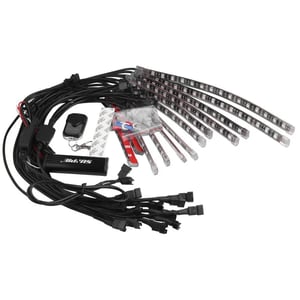 Total of 12 PCs RGB strips in the package, 2 pcs 10", 2 pcs 8", 6 pcs 6" and 2 pcs 4" strip lights. What's more, the LED strips can be cut to fit perfect. With these bright color change strip lights, your ride will look definitely cool at night and you can be seen from a long distance. And of course, they will be great accessories if you have motorcycle shows.