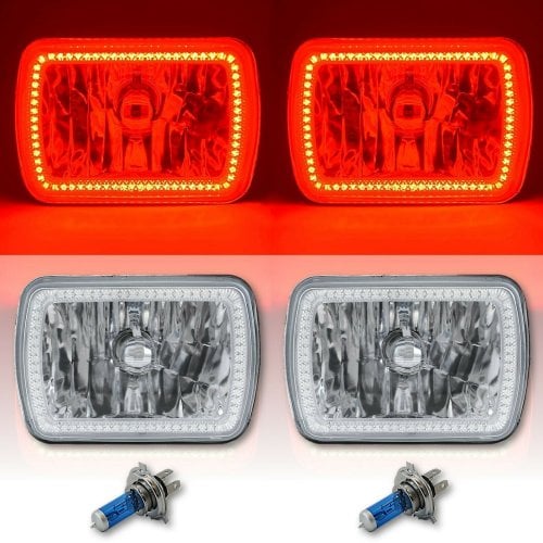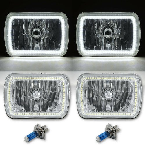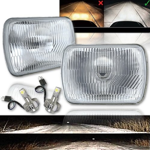 7X6 Crystal Clear Glass Lens Metal Headlight WITH LED 6K NON HALO